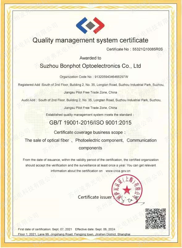 蘇州leyu集團光電科技有限公司已于今日通過GB/T 19001-2016/ISO 9001:2015質(zhì)量管理體系認證。
