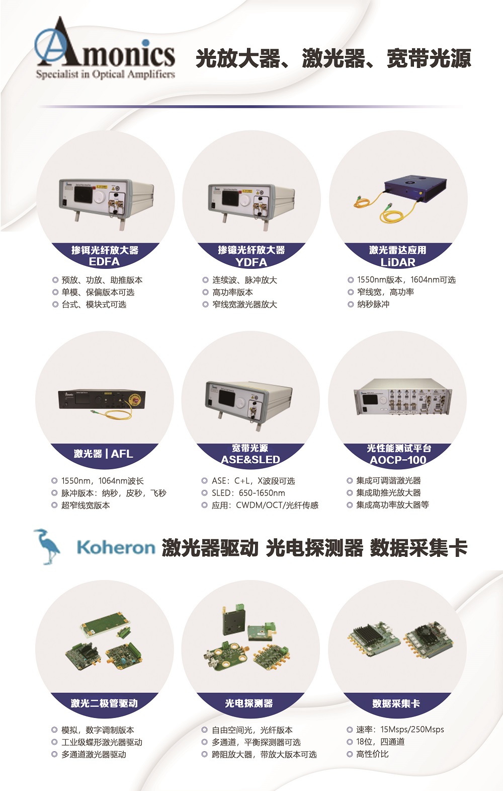 (4)Amonics:激光器&摻鉺光纖放大器 & Koheron 激光二極管驅(qū)動(dòng),光電二極管