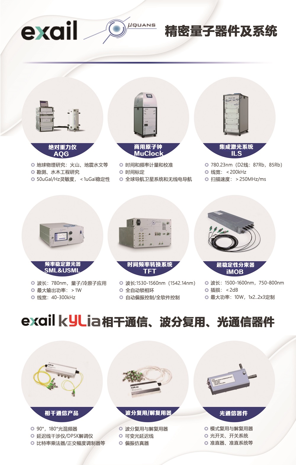 (7)exail/Muquans 量子級激光器,量子重力儀 & exail/Kylia 微光學(xué)產(chǎn)品:光混頻器,延遲線干涉儀