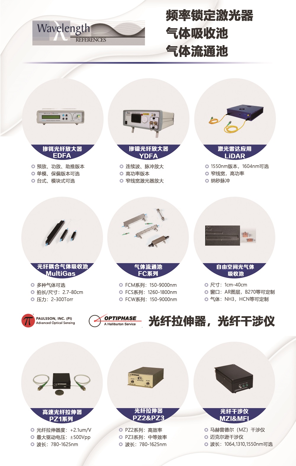 (11)Wavelength References 氣體流通池/氣體參考池 & PAULSSON/OPTIPHASE 光纖拉伸器,光纖干涉儀