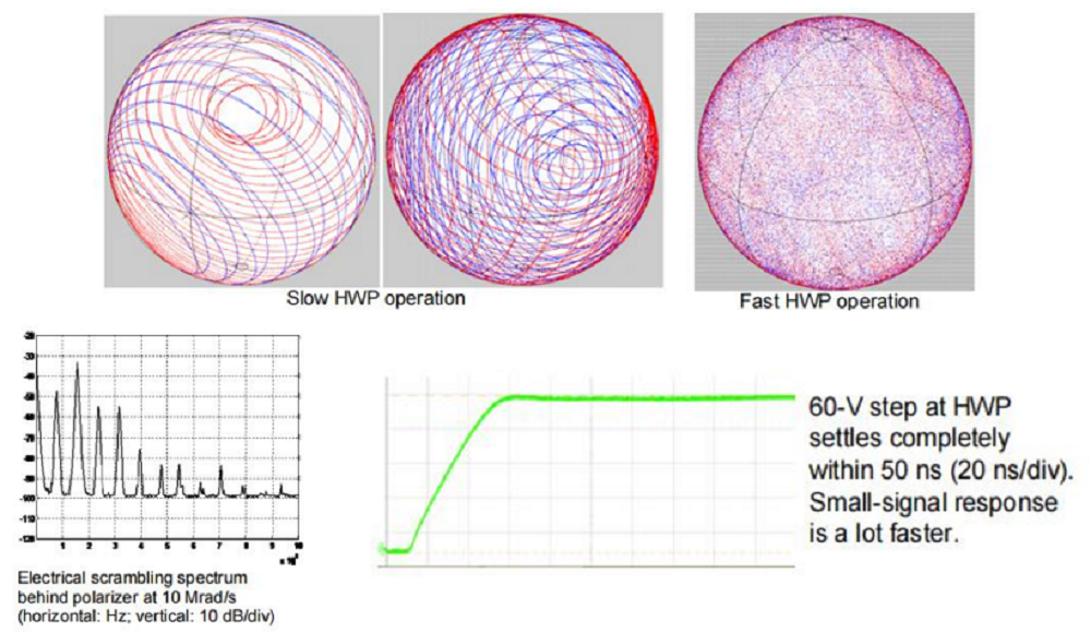 EPS1000是一款基于旋轉(zhuǎn)速度可調(diào)的電光波片,超快無(wú)端光學(xué)偏振加擾速度高達(dá) 10000 krad/s(20000 krad/s,精度降低;更多根據(jù)要求提供。40 ns 時(shí)鐘周期(= 更新間隔)即使在高加擾速度(例如,以 500 krad/s 的 0.02 rad 步長(zhǎng))也能確保連續(xù)、準(zhǔn)穩(wěn)定的極化變化。