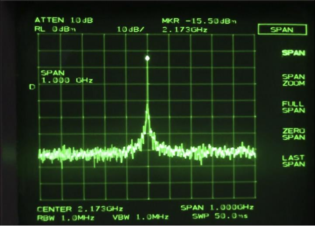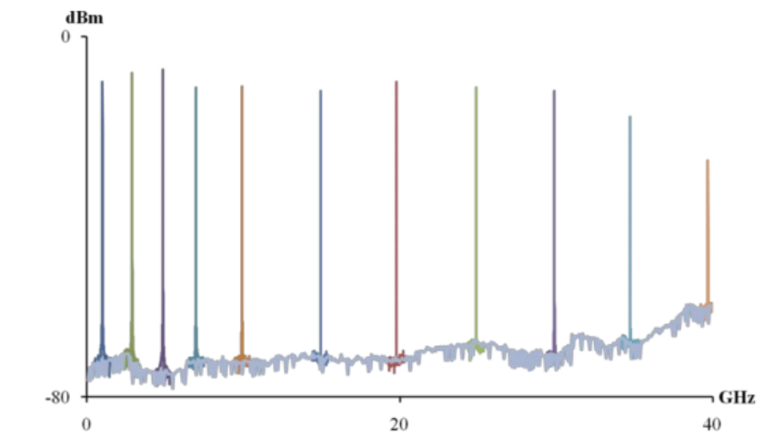 通過光接收器和射頻頻譜分析儀測量的樣本外差信號。