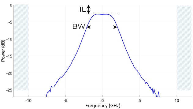 典型響應(IN ? OUT):允許傳輸特定窄帶,抑制C或L波段中其他波長。提供從1 -4 GHz多個帶寬選擇 |
