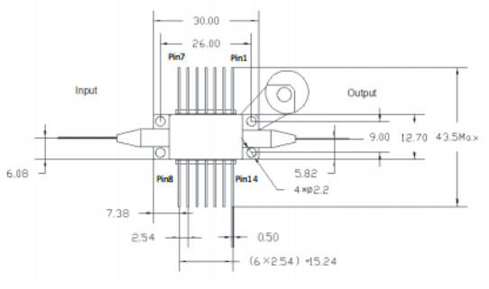 1550nm波段-25dBm飽和輸出功率-35dB增益-蝶形封裝-單模光纖-FC/APC接頭