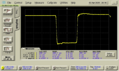 100ps脈寬 @時鐘頻率. 1GHz,輸出電平 6.8Vpp |