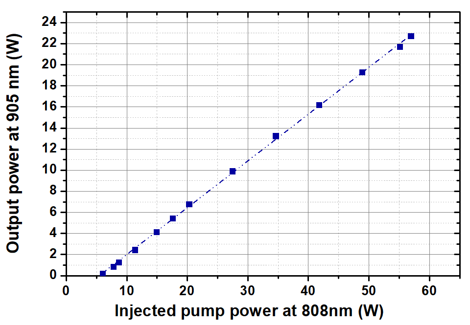 IXF-2CF-Nd-PM-30-130光纖用于放大器配置,以增加905 nm脈沖激光,在40 kHz的重復(fù)率下實(shí)現(xiàn)高達(dá)24 W的平均功率,脈沖持續(xù)時(shí)間為45 ns。采用倍頻技術(shù),在452nm處達(dá)到4.9W,在226nm處達(dá)到0.5W。